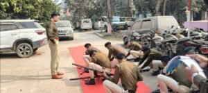 निरीक्षण के क्रम में थाना के पुलिस पदाधिकारियों एवं कर्मियों की हथियारों के खोल-जोड़ (Weapon