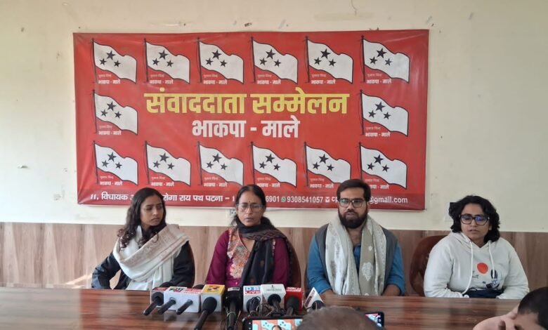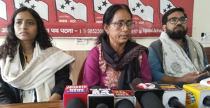संवाददाता सम्मेलन में AIPWA की महासचिव कॉमरेड मीना तिवारी के साथ दिव्या गौतम, AISA की प्रदेश अध्यक्ष प्रीति कुमारी और राज्य सह-सचिव कुमार दिव्यम मौजूद रहे।